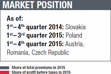 VIG successful in Ukraine, despite the crisis. The situation in Ukraine continues to be extremely difficult for the people there and we can only hope that the situation calms down soon. VIG has almost no representation in Crimea and the conflict areas in eastern Ukraine. In spite of difficult conditions, local management continued to handle the situation there outstandingly in 2015, thereby proving the value of VIG’s principle of local entrepreneurship. The Ukrainian companies achieved strong premium growth of 31.4% in local currency terms in 2015. VIG’s market share of 4.3% puts it in third place in the Ukrainian market.
